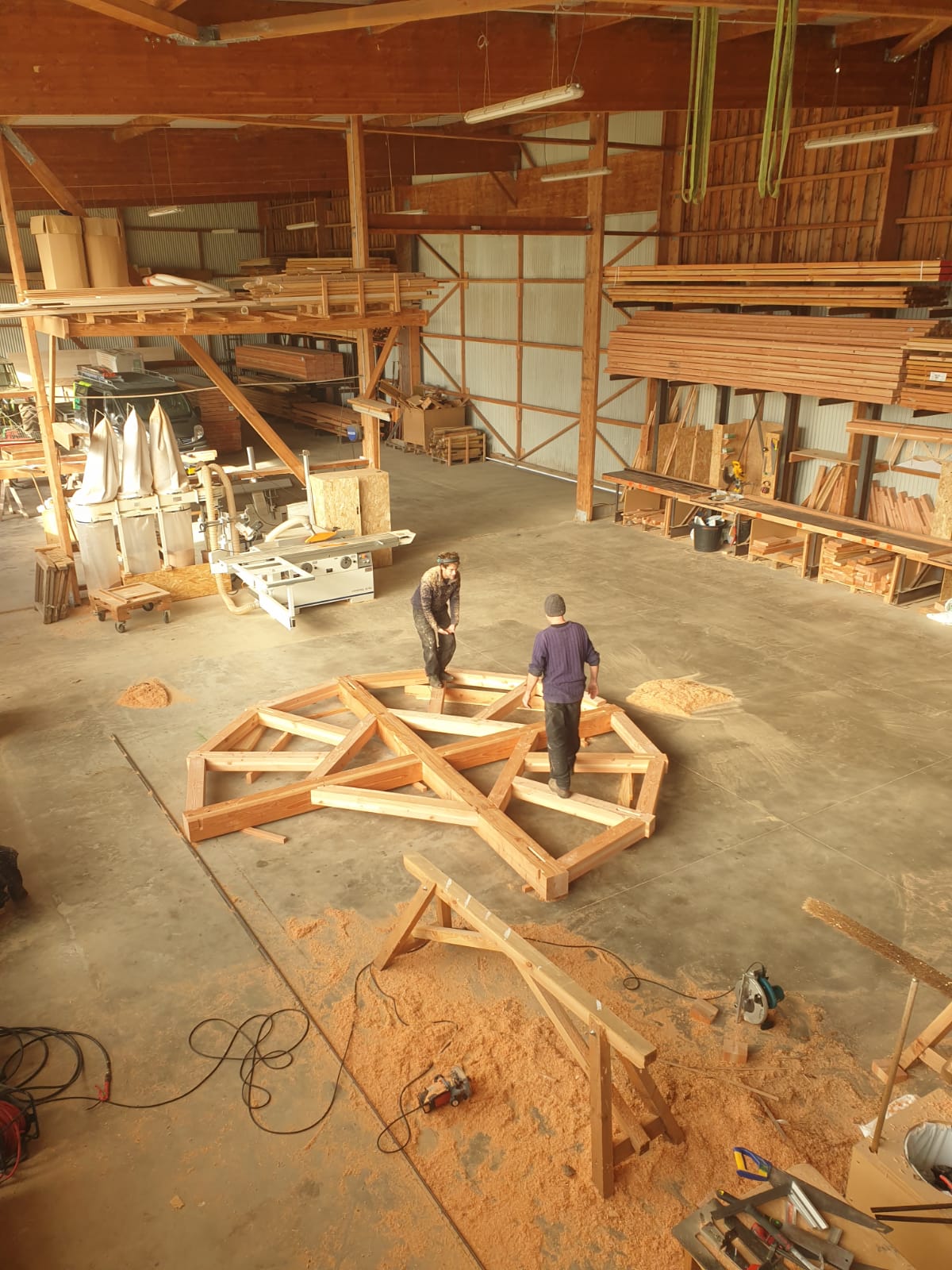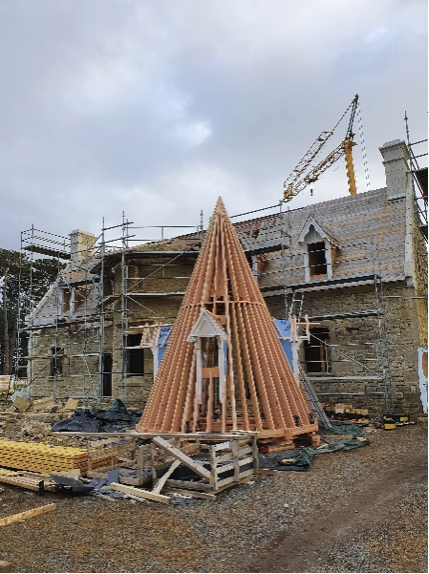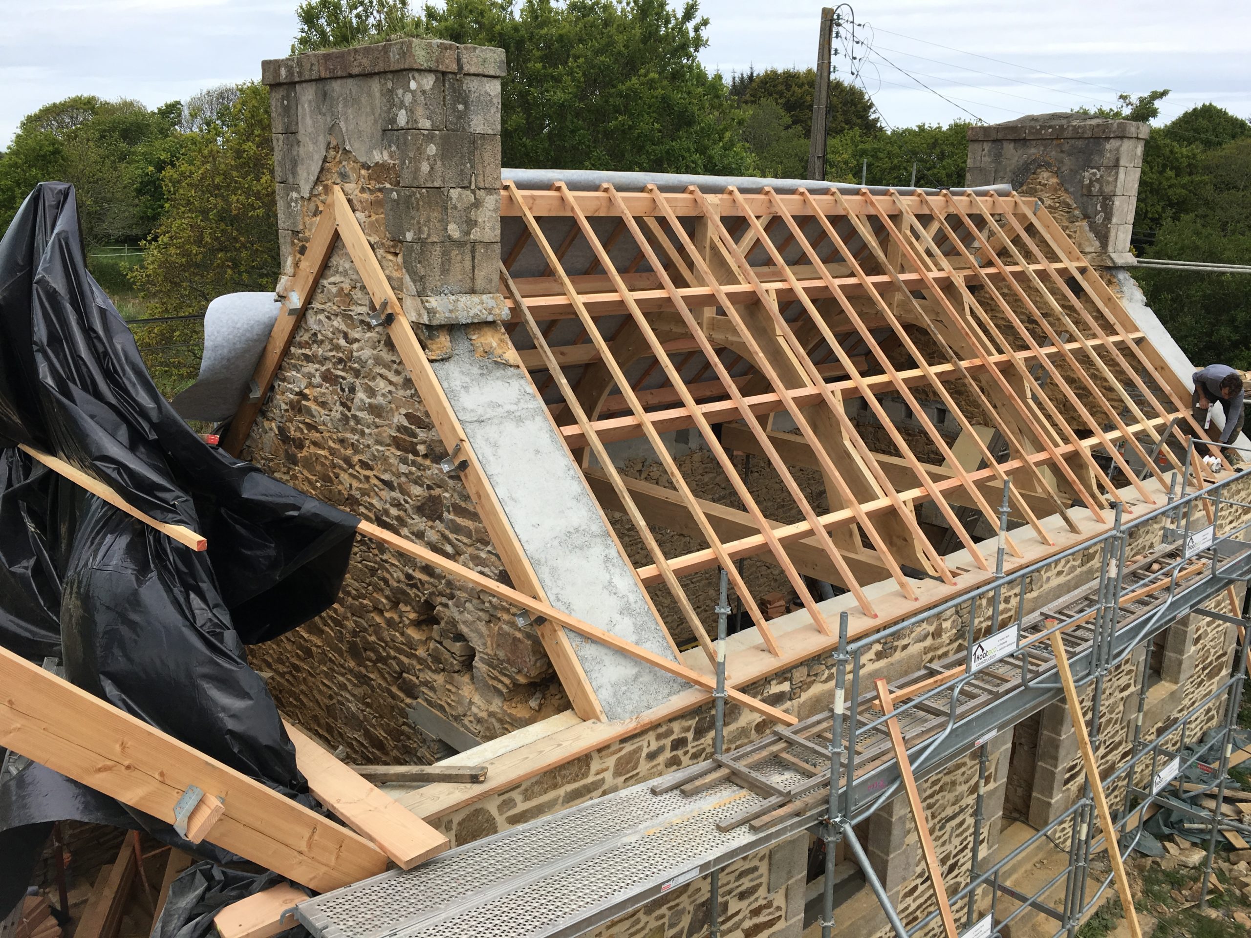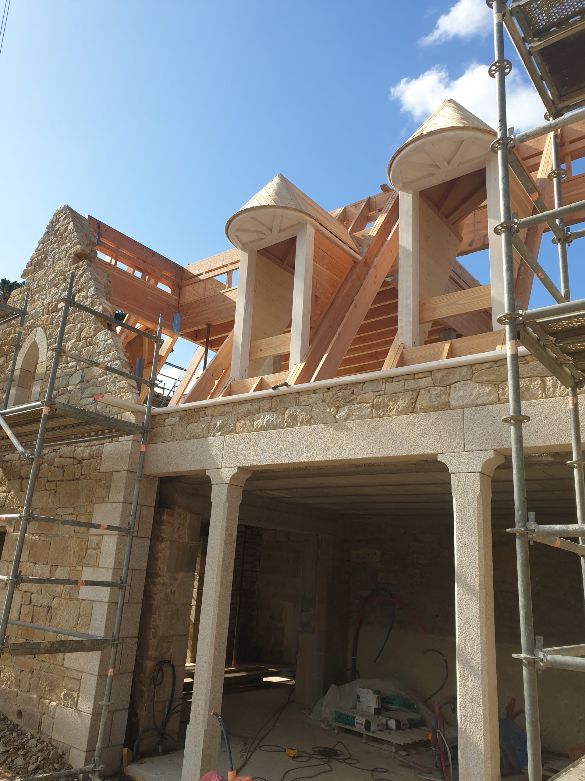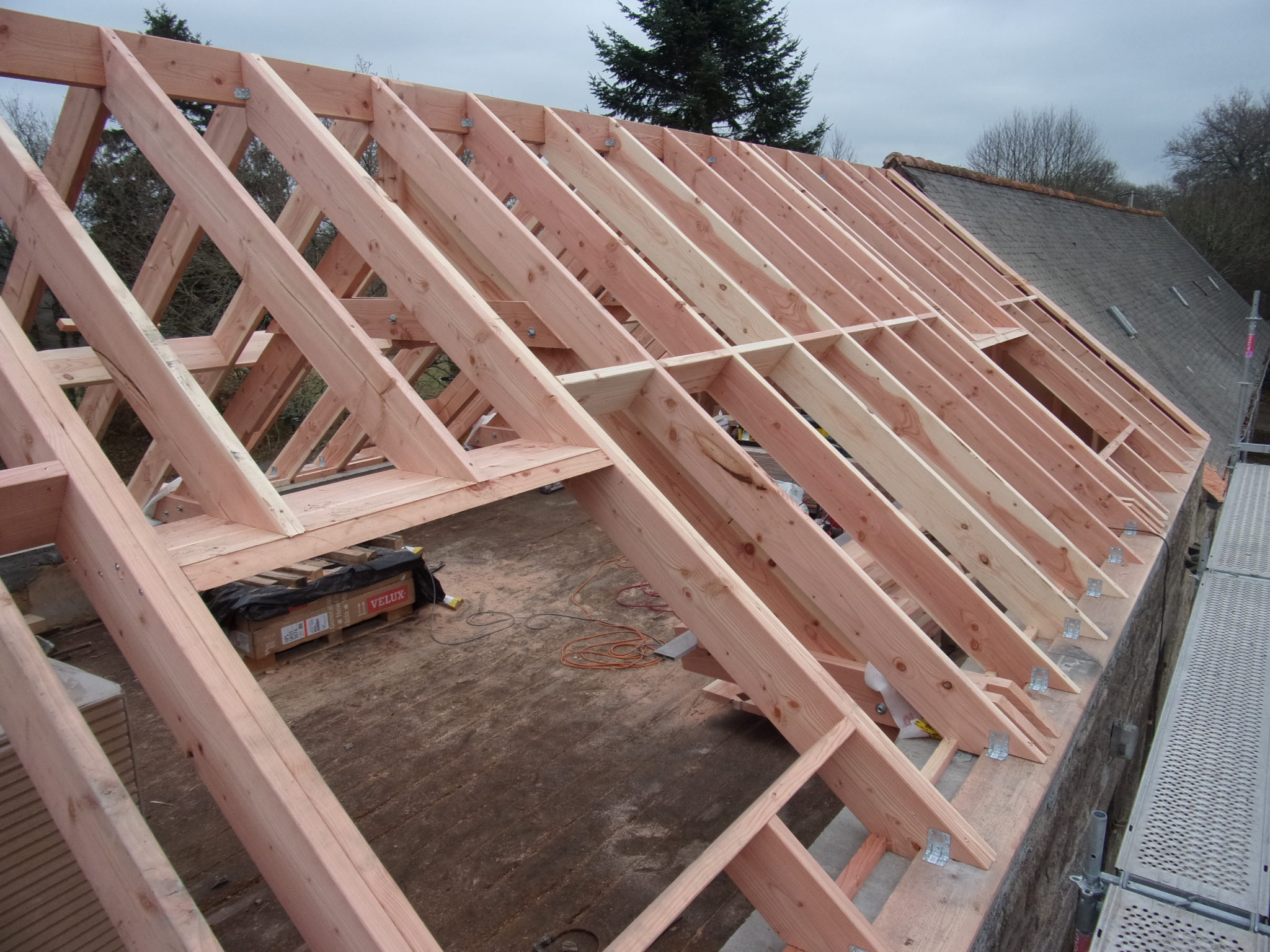 Chez Koateco Construction, nous avons tous été formés chez les Compagnons du Devoir. Dans le respect des traditions de la charpente, nous pouvons fabriquer des charpentes apparentes pour du bâti ancien ou neuf. Nous faisons alors appel aux systèmes d’assemblages traditionnels tels que tenons/mortaises ou embrèvements, et travaillons avec des essences telles que Chêne, Douglas ou Sapin, raboté ou non. Des structures en Lamellé collé d’aspect plus moderne ou en bois rond pour des charpentes uniques sont aussi réalisables.