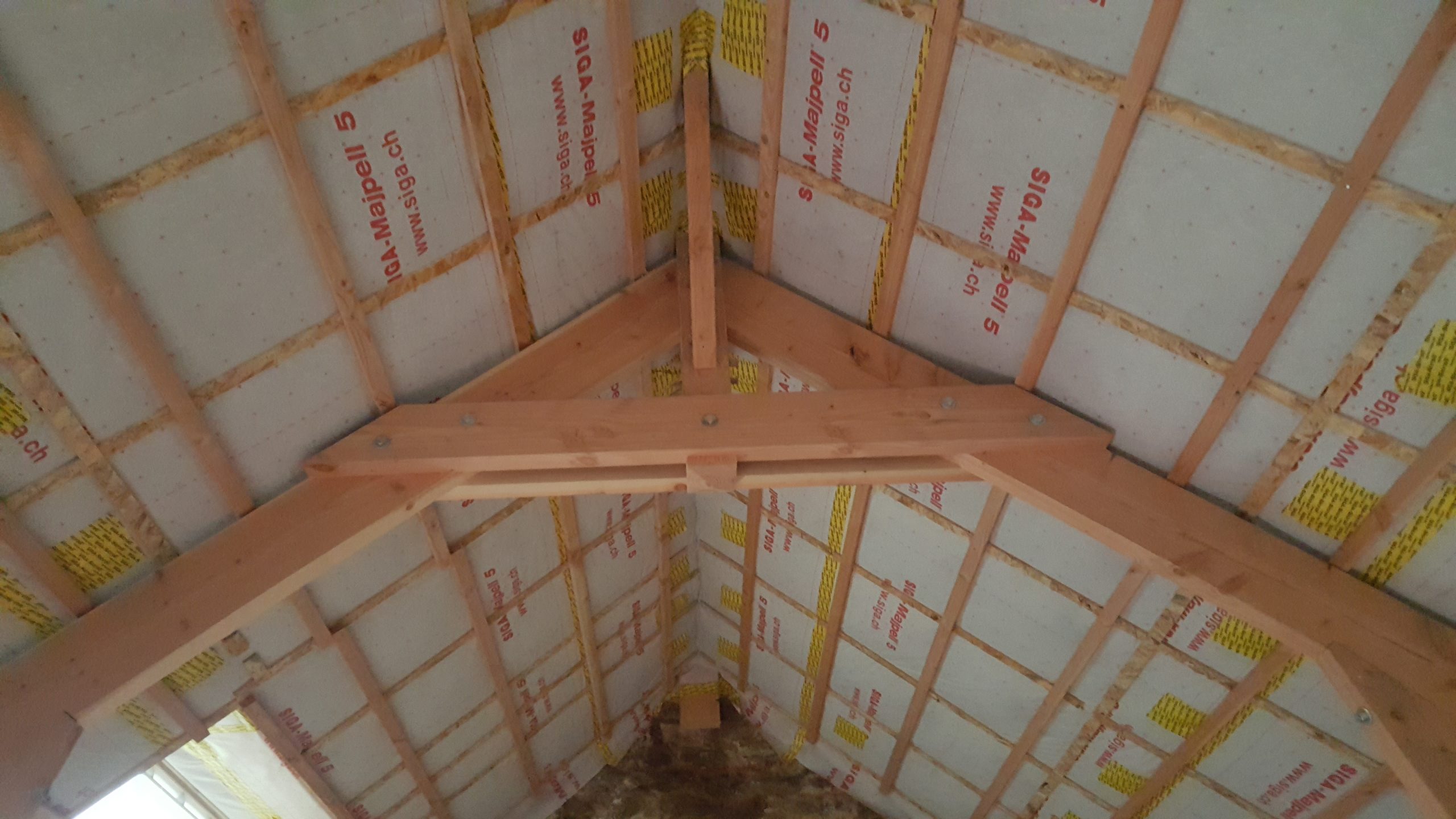 Notre système de mise en œuvre permet de concilier la performance énergétique (bonne épaisseur d’isolation et continuité de l’étanchéité à l’air) avec l’esthétisme (fermes apparentes, assemblages tenons-mortaises avec chevilles…)