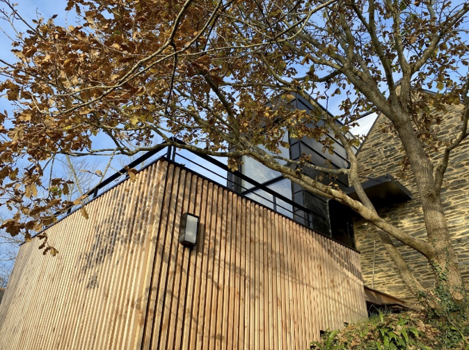 • Douglas purgé d’aubier ajouré vertical et zinc
