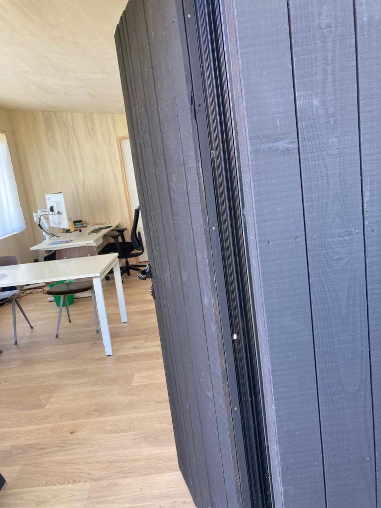 - Douglas purgé d’aubier vertical brut de sciage, peint en noir de Falun.