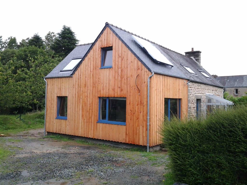 Le projet a consisté à envelopper la maison existante sur deux faces (le pignon Ouest et la façade Nord), par une extension de 55 m2 sur deux niveaux, comportant une grande salle à manger-cuisine ouverte sur le jardin, une buanderie, WC, salle de bain, et deux chambres d’enfants supplémentaires.