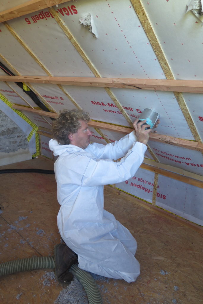 - Toiture : ouate de cellulose 300mm et fibre de bois 35mm.