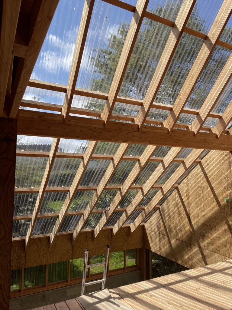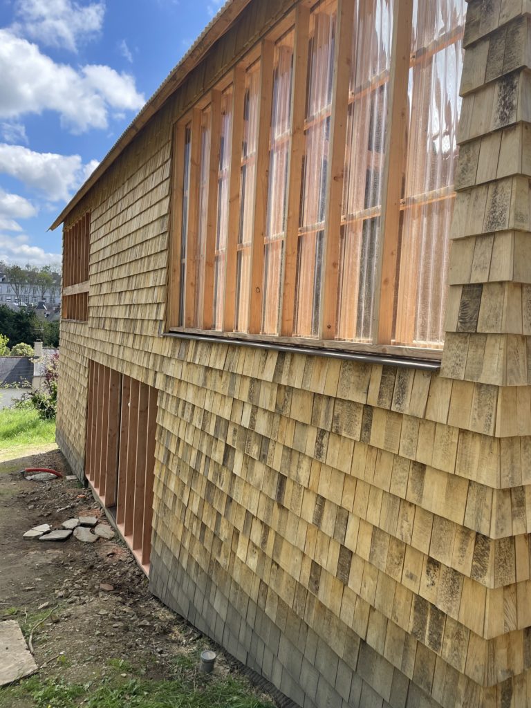 • Ossature bois massif douglas 360 mm pour isolation en bottes de paille.