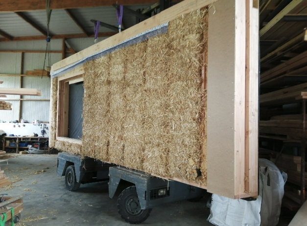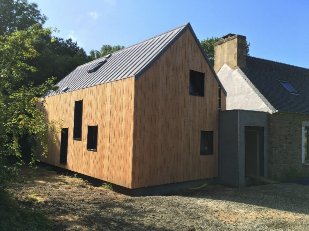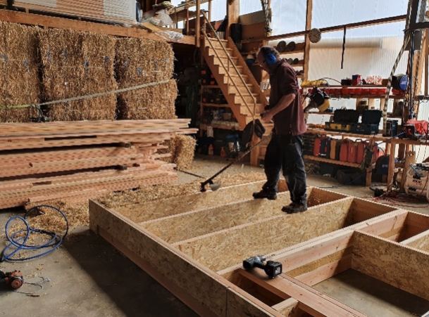 - Ossature bois massif douglas 360 mm pour isolation en bottes de paille.
